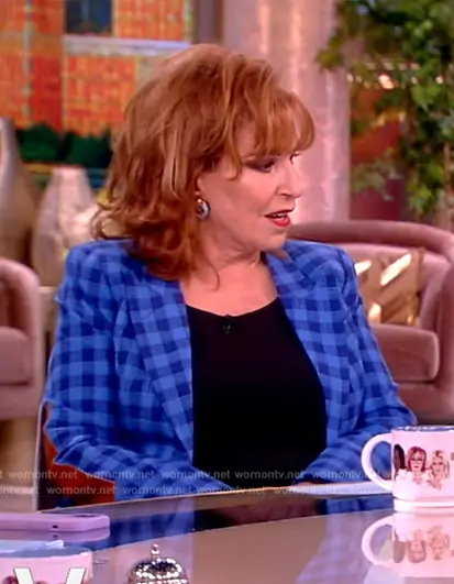 Joy Behar on The View on ABC was spotted wearing this blue check print blazer on The View on Jul 31 2024's episode. Joy's Blazer is the Patch-Pocket Duchess Blazer with Leather Elbow Patches by Smythe.