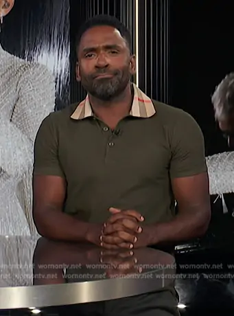 Burberry Cody Check-Collar Polo Shirt worn by Justin Sylvester on E! News
