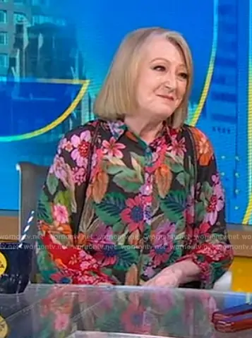 on Good Morning America on ABC was spotted wearing this floral print blouse on Good Morning America on Aug 01 2024's episode. 's Top is the Lapham Adonia Tunic by Johnny Was.