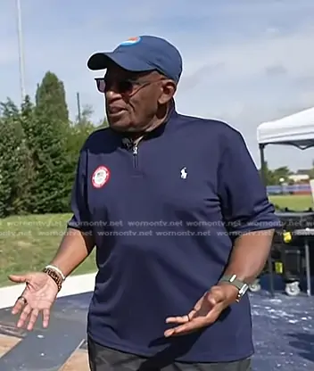 on Today on NBC was spotted wearing this navy quarter zip shirt on Today on Aug 05 2024's episode. 's Sweater is the Team USA Micro Dot Mesh Pullover by Polo Ralph Lauren . 's Shoes is the Fresh Foam X 1080 V12 Running Shoe by New Balance.
