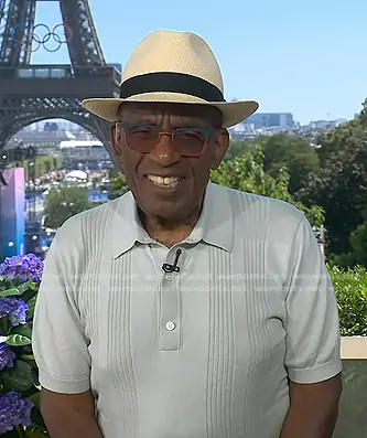 on Today on NBC was spotted wearing this grey ribbed polo shirt on Today on Aug 05 2024's episode.