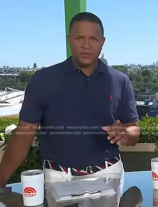 on Today on NBC was spotted wearing this navy polo and striped belt on Today on Aug 05 2024's episode. 's Shirt is the Classic-Fit Mesh Polo in Newport Navy by Polo Ralph Lauren . 's Belt is the Team Usa Striped Belt In Red/white/blue by Polo Ralph Lauren.