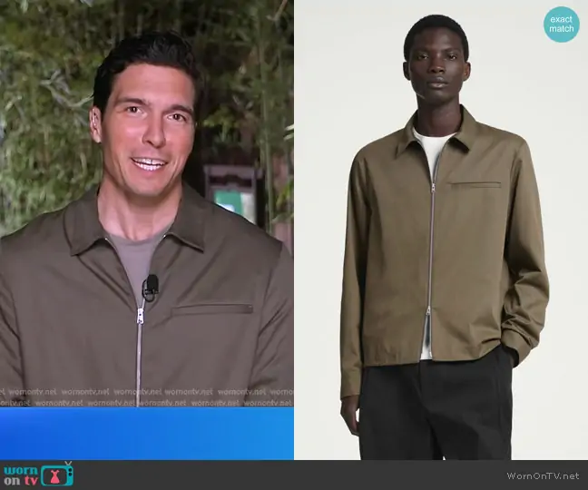 on Good Morning America on ABC was spotted wearing this khaki jacket on Good Morning America on Aug 06 2024's episode. 's Jacket is the Zip-Up Twill Jacket in Khaki by Cos.