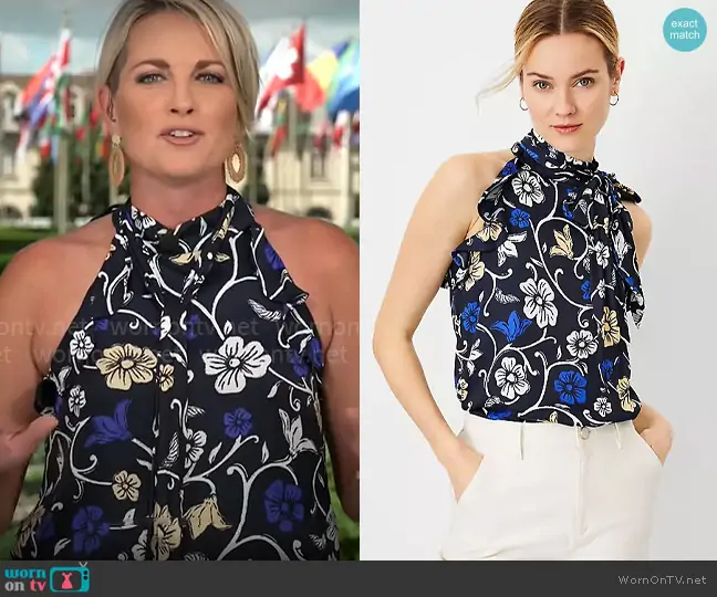 Ann Taylor Floral Ruffle Halter Top worn by Jamie Yuccas on CBS Mornings