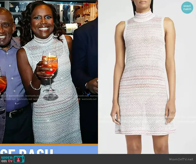 on Today on NBC was spotted wearing this stripe knit sleeveless mini dress on Today on Aug 12 2024's episode. 's Dress is the Sleeveless Ombré Knit Minidress by Missoni.