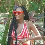 Caroline Brooks (played by Caroline Brooks) on The Real Housewives of Dubai on BravoTV was spotted wearing this black leggings and beige plaid bucket hat on The Real Housewives of Dubai on episode 'Dressed to the Whines' (2x10) in Aug 2024. Caroline B's Leggings is the Swoosh Run Mid-rise 7/8 Running Leggings in Black by Nike . Caroline B's Sunglasses is the 90s Round Sunglasses by Dolce & Gabbana . Caroline B's Hat is the Check-Print Twill Bucket Hat by Burberry . Caroline B's Bag is the Rive Gauche Tote Bag by Saint Laurent.