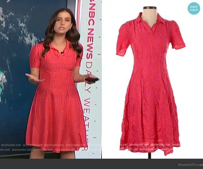 on NBC News Daily on NBC was spotted wearing this pink polka dot dress on NBC News Daily on Aug 14 2024's episode. 's Dress is the Dress by Tara Jarmon.