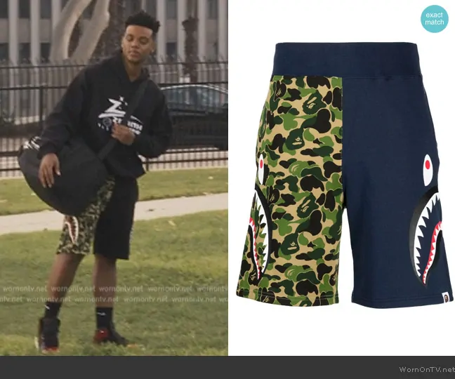 Will Smith (played by Jabari Banks) on Bel-Air on Peacock was spotted wearing this printed basketball shorts on Bel-Air on episode 'Baby, I'm Back' (3x01) in Aug 2024. Will's Shorts is the ABC Camo Side Shark cotton shorts by A Bathing Ape.