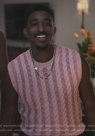 Jazz (played by Jordan L. Jones) on Bel-Air on Peacock was spotted wearing this pink knit vest on Bel-Air on episode 'Baby, I'm Back' (3x01) in Aug 2024. 's Vest is the Oversized knitted acid cable tank in pink by ASOS.