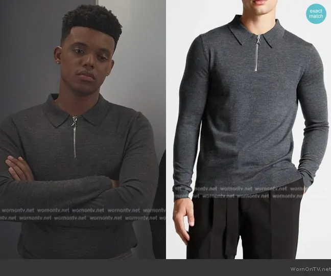 Will Smith (played by Jabari Banks) on Bel-Air on Peacock was spotted wearing this gray zip sweater on Bel-Air on episode 'Pivot' (3x02) in Aug 2024. Will's Sweater is the Merino Wool Sweater by Maniere De Voir.