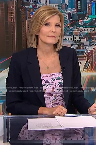 Kate Snow on NBC News Daily on NBC was spotted wearing this pink floral dress on NBC News Daily on Aug 19 2024's episode. Kate's Dress is the Acacia Tie Strap Ruffle Dress by Amur.