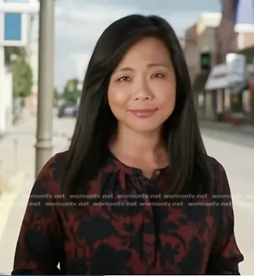 on CBS Evening News on CBS was spotted wearing this brown floral blouse on CBS Evening News on Aug 19 2024's episode. 's Top is the Floral Blouse by Ann Taylor.