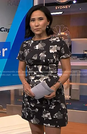 Vicky Nguyen on NBC News Daily on NBC was spotted wearing this black printed mini dress on NBC News Daily on Aug 20 2024's episode. Vicky's Dress is the Ball Camo Print Dress by French Connection.