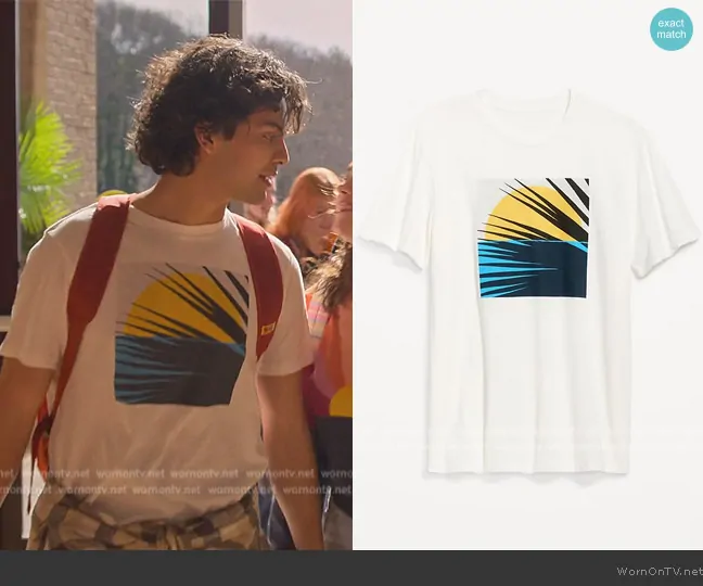 Miguel Diaz (played by Xolo Maridueña) on Cobra Kai on Netflix was spotted wearing this white graphic print tee on Cobra Kai on episode 'Peacetime in the Valley' (6x01) in Jul 2024. Miguel's Shirt is the Soft Washed Graphic T-Shirt by Old Navy.