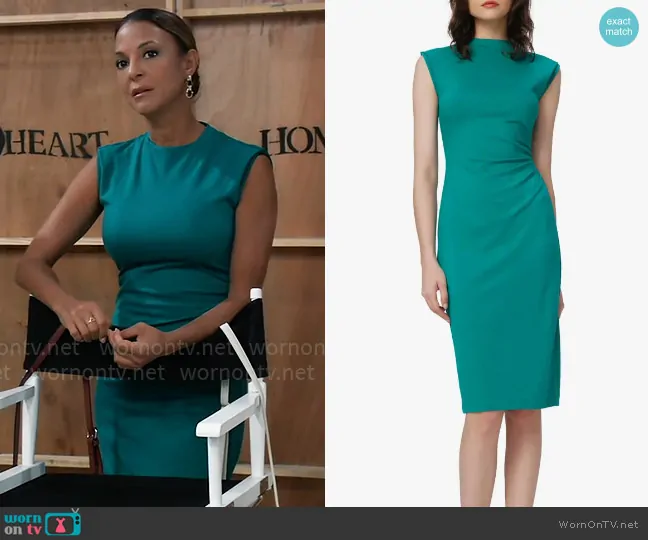 Natalia (played by Eva LaRue) on General Hospital on ABC was spotted wearing this green ruched dress on General Hospital on Aug 22 2024's episode. Natalia's Dress is the Darrius Dress in Emerald by Diane von Furstenberg.