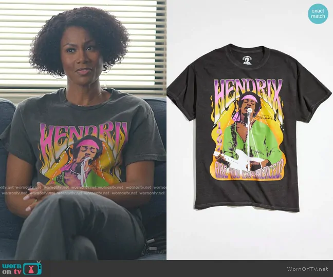 Jax Stewart (played by Emayatzy Corinealdi) on Reasonable Doubt on Hulu was spotted wearing this Jimi Hendrix print tee on Reasonable Doubt on episode 'Can I Live?' (2x01) in Aug 2024. Jax's Top is the Jimi Hendrix Are You Experienced Tee by Urban Outfitters.