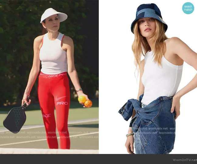 Heather Dubrow on The Real Housewives of Orange County on Bravo was spotted wearing this white crop top and leggings on The Real Housewives of Orange County on episode 'The Gloves Are Off' (18x07) in Aug 2024. Heather's Top is the Cynda Ribbed Tank Top by Ba&sh . Heather's Leggings is the Pro Dri-FIT leggings in red by Nike.