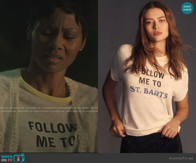 Jax Stewart (played by Emayatzy Corinealdi) on Reasonable Doubt on Hulu was spotted wearing this white graphic print tee on Reasonable Doubt on episode 'Say Hello' (2x02) in Aug 2024. Jax's Top is the Graphic Ringer Tee in Ivory by Pilcro.