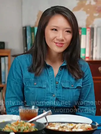 Nancy Chen on CBS Mornings on CBS was spotted wearing this denim shirtdress on CBS Mornings on Aug 25 2024's episode. Nancy's Dress is the Chambray Belted Midi Pocket Shirtdress by Loft .