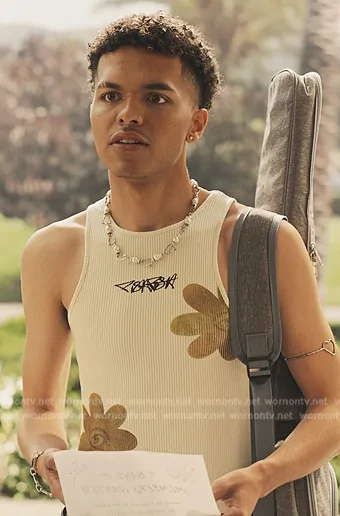 Eli (played by ) on Bel-Air on Peacock was spotted wearing this floral tank on Bel-Air on episode 'Getting Personal' (3x05) in Aug 2024. 's Tank is the Ribbed Tank Top by Pishposh.