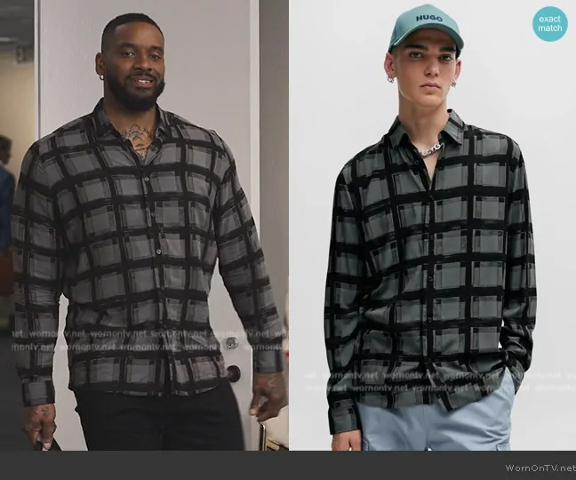 Shareef (played by Joshua Adeyeye) on Bel-Air on Peacock was spotted wearing this gray check shirt on Bel-Air on episode 'Getting Personal' (3x05) in Aug 2024. 's Shirt is the Relaxed-Fit Shirt with All-Over Abstract Print Hugo.
