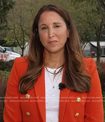 Veronica Beard Miller Dickey Jacket in Flame Red worn by Yasmin Vossoughian on NBC News Daily