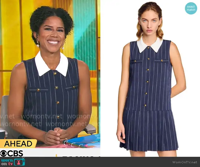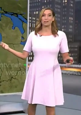 Stephanie Abrams on CBS Mornings on CBS was spotted wearing this Stephanie Abrams’ light pink a-line dress on CBS Mornings on Aug 28 2024's episode. Stephanie's Dress is the Boat Neck Seamed A-Line Dress by Calvin Klein .