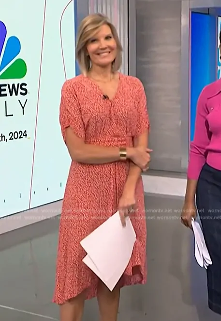 Kate Snow on NBC News Daily on NBC was spotted wearing this red printed wrap dress on NBC News Daily on Sep 01 2024's episode. Kate's Dress is the Giani Wrap Dress by Ba&sh.