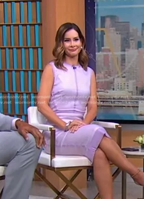 Rebecca Jarvis on Good Morning America on ABC was spotted wearing this lilac sleeveless dress on Good Morning America on Sep 02 2024's episode. Rebecca's Dress is the Sleeveless Linear Fitted Midi Dress in Lilac by Victoria Beckham.