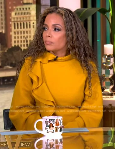 Sunny Hostin on The View on ABC was spotted wearing this yellow ruffle sweater and skirt on The View on Sep 03 2024's episode. Sunny's Sweater is the Corinna sweater by Ulla Johnson . Sunny's Skirt is the Mireya Skirt by Ulla Johnson.
