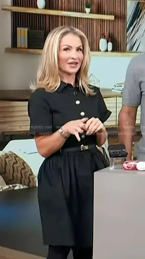 on Access Hollywood on NBC was spotted wearing this black gold button dress on Access Hollywood on Oct 23 2025's episode. 's Dress is the A-line shirtdress in chino by J. Crew.