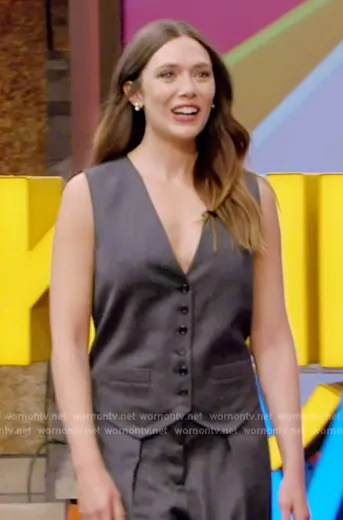 on Live with Kelly and Mark on Disney ABC Home Entertainment was spotted wearing this gray jumpsuit on Live with Kelly and Mark on Sep 05 2024's episode. 's Jumpsuit is the Suit in grain powder wool by Moschino.