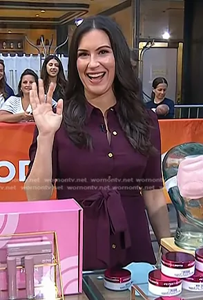 on Today on NBC was spotted wearing this burgundy tie waist shirtdress on Today on Sep 05 2024's episode. 's Dress is the Puff Sleeve Shirtdress in Wine by Eliza J.