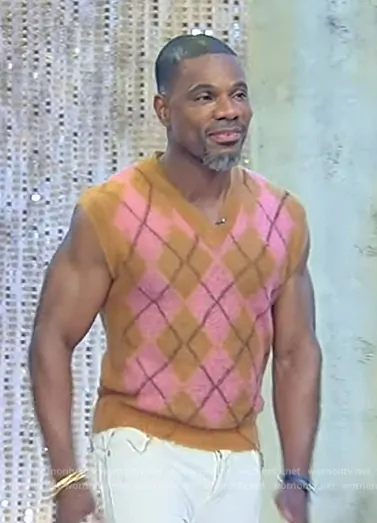 on Tamron Hall Show on ABC was spotted wearing this argyle vest on Tamron Hall Show on Sep 05 2024's episode. 's Vest is the Argyle-intarsia V-neck vest by Marni.