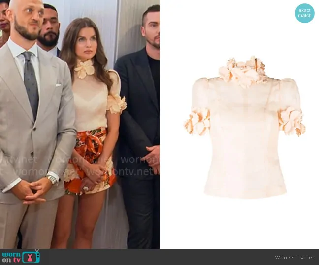 Jessica Markowski on Owning Manhattan on Netflix was spotted wearing this floral shorts and beige applique top on Owning Manhattan on episode 'War and Real Estate' (1x07) in Aug 2024. Jessica's Top is the Luminosity Liftoff Sheer Flower Top by Zimmermann . Jessica's Shorts is the Wonderland Floral Linen Shorts by Zimmermann.