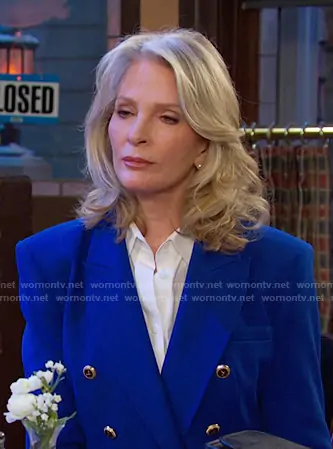 Zara Tailored Double Breasted Blazer in Bluish worn by Marlena Evans (Deidre Hall) on Days of our Lives