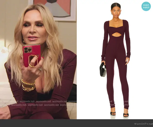 Tamra Judge on The Real Housewives of Orange County on Bravo was spotted wearing this burgundy on episode 'A Picture Worth a Thousand Words' (18x09) in Sep 2024. Tamra's Jumpsuit is the Tanya Jumpsuit by Lovers and Friends.
