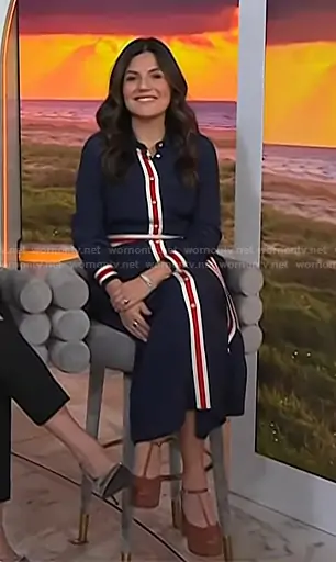 Adrianna Barrionuevo Brach on Today on NBC was spotted wearing this brown ankle strap platform pumps on Today on Nov 14 2025's episode. Adrianna's Shoes is the Pixie Ankle Strap Platform Pump by Larroudé.