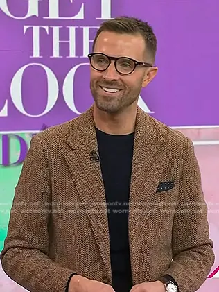 on Today on NBC was spotted wearing this brown herringbone blazer on Today on Sep 29 2025's episode. 's Jacket is the Single-breasted Wool-blend Blazer by Polo Ralph Lauren.