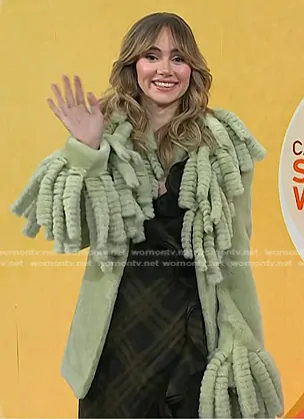 on Today on NBC was spotted wearing this green plaid dress and jacket on Today on Sep 12 2024's episode. 's Outfit is the Spring 2025 Collection by Burberry.