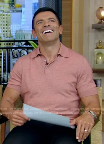 on Live with Kelly and Mark on Disney ABC Home Entertainment was spotted wearing this pink polo on Live with Kelly and Mark on Sep 16 2024's episode. 's Shirt is the Cotton-Cashmere Polo Shirt by Zegna.