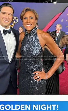 Robin Roberts on Good Morning America on ABC was spotted wearing this sequin gown at The Emmys on Good Morning America on Sep 16 2024's episode. Robin's Dress is the Robin Dress by Marc Bouwer.