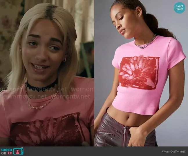 Ava (played by Amirah J) on High Potential on Hulu was spotted wearing this pink flower graphic tee on High Potential on episode 'Dirty Rotten Scoundrel' (1x03) in Oct 2024. Ava's Top is the Lotus Perfect Cap Sleeve Baby Tee by Urban Outfitters.