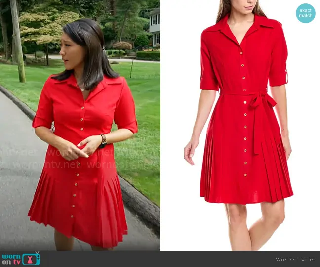 Nancy Chen on CBS Mornings on CBS was spotted wearing this red pleated shirtdress on CBS Mornings on Sep 17 2024's episode. Nancy's Dress is the Sharagano shirtdress by Nanette Lepore .