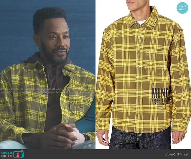 Lewis Stewart (played by McKinley Freeman) on Reasonable Doubt on Hulu was spotted wearing this yellow plaid shirt jacket on Reasonable Doubt on episode 'Guilty Until Proven Innocent' (2x05) in Sep 2024. Lewis's Shirt is the Plaid Arts District Sport Shirt in Lemon by Hudson.