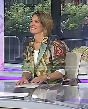 on Today on NBC was spotted wearing this Michelle Collins’ print blazer on Today on Sep 17 2024's episode. 's Jacket is the Ancient Art Blazer Suit Set in Multi Color by Fashion Nova.
