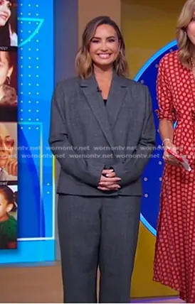 on Good Morning America on ABC was spotted wearing this grey cropped blazer and pant suit on Good Morning America on Sep 18 2024's episode. 's Jacket is the Wool Cropped Blazer in Grey by Loewe . 's Pants is the Wool Pants in Grey by Loewe.
