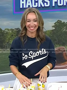 on Today on NBC was spotted wearing this navy Go Sports sweatshirt on Today on Sep 18 2024's episode. 's Sweater is the Go Sports Sweatshirt in Dark Navy by Favorite Daughter.