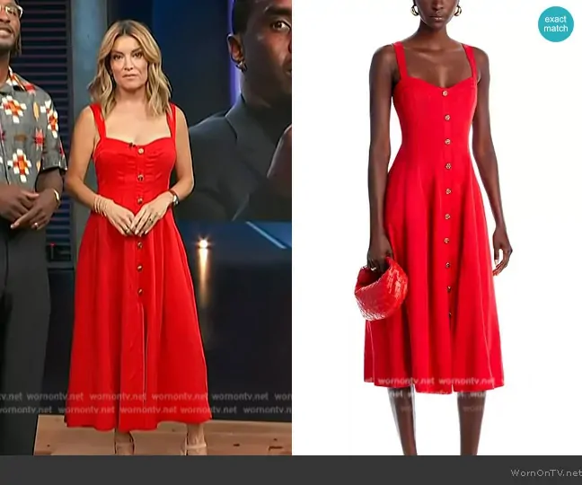 Kit Hoover on Access Hollywood on NBC was spotted wearing this red button front dress on Access Hollywood on May 21 2025's episode. Kit's Dress is the Button Front Midi Dress by Aqua x Liat Baruch.