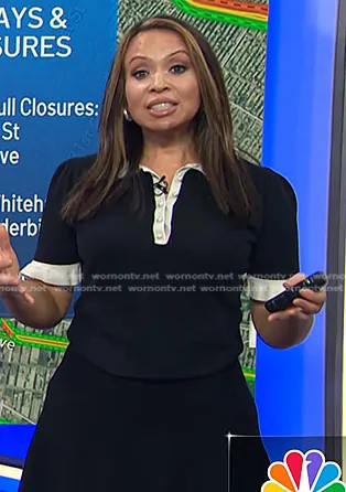 Adelle Caballero on Today on NBC was spotted wearing this black contrast ruffle trim polo top on Today on Sep 24 2024's episode. Adelle's Top is the Solange Ruffled Polo Sweater by Sandro.